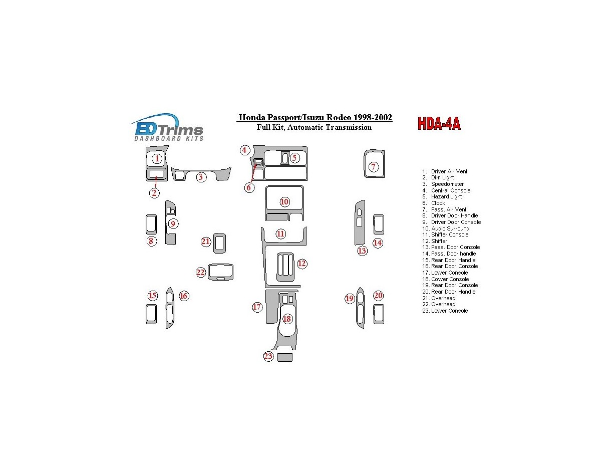 Honda Pasport 1998-2002 Voll Satz BD innenausstattung armaturendekor cockpit dekor