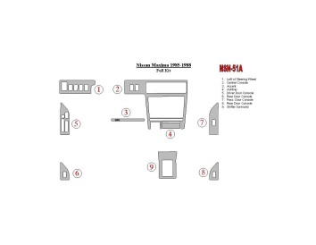 Vehicle Type: NissanModell: MaximaVariante: All Models and VersionsManufacturing Year: 02.00 - 02.04Quantity of Trim Parts: 22Position of Interior Customisation Part: Dash Board, Doors, Air Vents, Glove Box, Steering Wheel, Light Switch, Gear Box3D-effect through thick material, gives a high-gloss effect, burl wood, carbon, vehicle trim Woodline, Carbon...