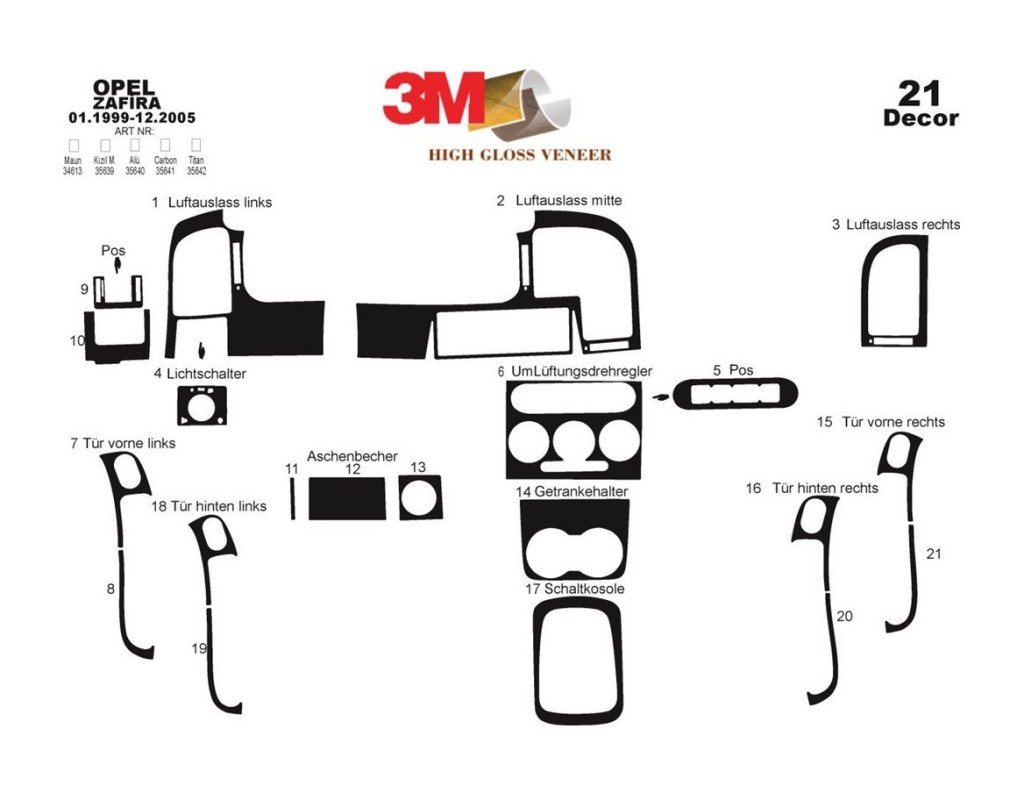 Opel Zafira A 01.99-12.05 3D Interior Dashboard Trim Kit Dash Trim Dekor 21-Parts
